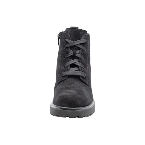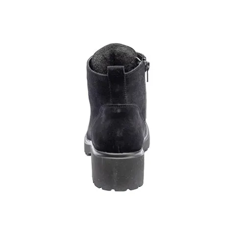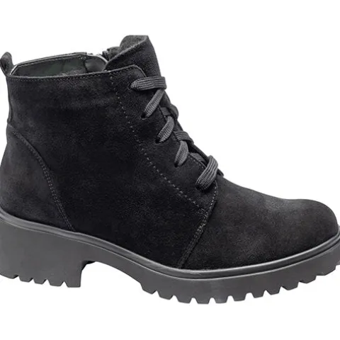 Fleksibel og flot Luise ankelstøvle i ruskind. Justeres med snører og lukkes med lynlås på indersiden. Den polstrede indersål kan tages ud, Og den grove ydersål giver et godt fodfæste. Med vidde H er der god plads til den lidt bredere fod.