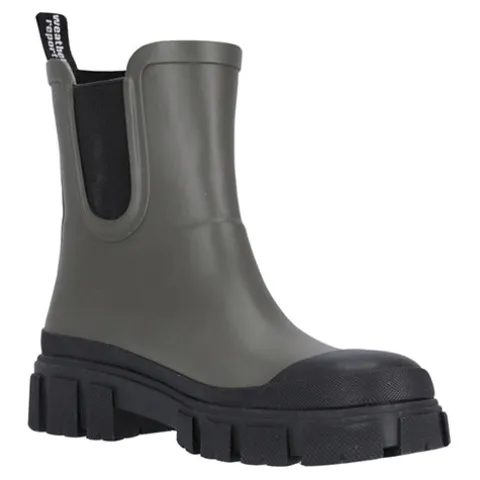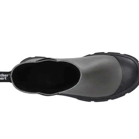 Gummistøvle med kraftig sål. Elastik i siderne. Modellen er stor i størrelsen.