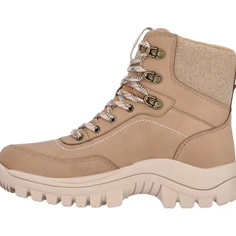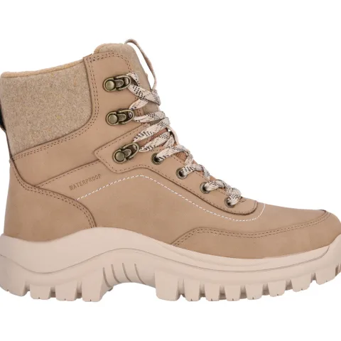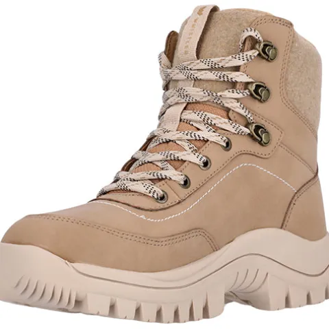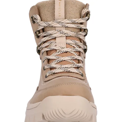 Flot Nuslog W Outdoor støvle fra Whistler med en overdel af nubuck-look forstærket rundt om forfoden og på hælen. Støvlen lukkes med snørebånd, og en trækfane bagpå samt på pløsen gør det nemt at træde i støvlen. Åbningen og pløsen er beklædt med fleece og er polstret for øget komfort og støtte. Indvendig sørger et fleecefoer og en vandtæt membran for at holde fødderne lune og tørre. Den komfortable indersål kan tages ud, og den kraftige gummiydersål med det grove mønster giver et godt fodfæste.