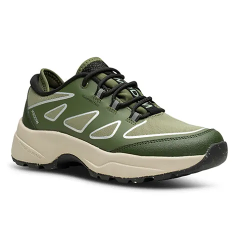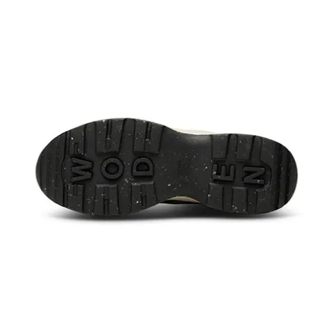 Komfortabel, praktisk og vandtæt Ophelia Waterproof sneaker fra Woden. Overdelen er af slidstærkt syntet og mesh med gummi på snude og hæl, dekoreret med reflekterende detaljer samt en fiskeskindsdetalje på pløsen. Mindst 50 % genanvendt polyester fra PET-flasker er inkorporeret i mesh-materialet. Skoen justeres og lukkes med snørebånd, og den let polstrede åbning er forstærket i hælen med ekstra stof. Den karakteristiske korkindersål med Airflow-system og blødt, stødabsorberende PU-skum kan tages ud, og den formstøbte EVA-ydersål belagt med gummi er baseret på Wodens Natural Soft teknologi, som sikrer den bedst mulige komfort og mest optimale vejgreb. Produktet er lille i størrelsen, og vi anbefaler derfor at gå en størrelse op.