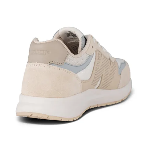 Lækker Rigmor Reflective sneaker med en overdel af certificeret ruskind fra Leather Working Group, glat skind, upcyclet fiskeskind med ASC-certificering og genanvendt meshtekstil i en flot farvesammensætning, tilsat refleksdetaljer på forfoden og om åbningen. Skoen lukkes med snørebånd, og åbningen er polstret for øget komfort. Den udtagelige, formstøbte PU-indersål beklædt med kork er åndbar, polstret og blød, og komforten understreges af den stødabsorberende letvægtsmellemsål støbt i EVA. Den fleksible gummiydersål med 10 % genanvendt gummi har et godt mønster og giver et godt fodfæste. Letvægtskonstruktionen sikrer komfort hele dagen og suppleres af WODENs eget Air Flow System™ for optimal ventilation samt WODENs Natural Soft-teknologi™.