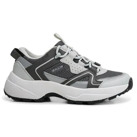 Unikt for WODEN sneakers er, at vi inkorporerer mindst 50% genanvendt polyester fra PET-flasker i materialet. Blødt PU-skum bruges til indersålen, som ikke kun er let, men også stødabsorberende.