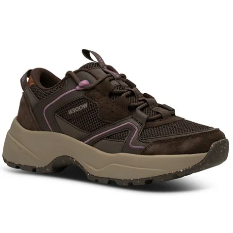 Lækker Sif Reflective sko fra Woden med en overdel af åndbart meshtekstil med ruskind på alle slidflader, dekoreret med glat skind og reflekterende syntet samt en fiskeskindsdetalje på hælen. Mindst 50 % genanvendt polyester fra PET-flasker er inkorporeret i mesh-materialet. Skoen justeres og lukkes med snørebånd, og gode trækfaner på hæl og pløs gør det nemt at træde i skoen. Åbningen er polstret for øget komfort og støtte. Den karakteristiske korkindersål med Airflow-system og blødt, stødabsorberende PU-skum kan tages ud, og den formstøbte EVA-ydersål belagt med gummi er baseret på Wodens Natural Soft teknologi, som sikrer den bedst mulige komfort og det mest optimale vejgreb. Produktet er lille i størrelsen, og vi anbefaler derfor at gå en størrelse op.