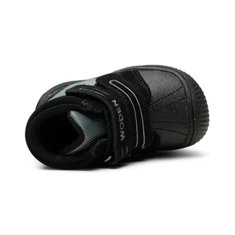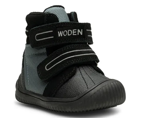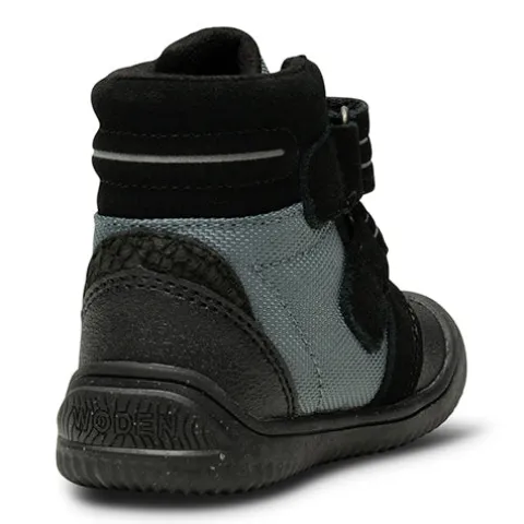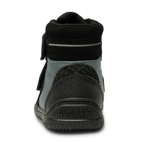 Tristan Boot ll er den optimale begynderbabystøvle. Den er bl.a. fremstillet af ruskind med detaljer af fiskeskind og er foret med genanvendte materialer. Støvlen har refleksdetaljer og lukkes med to velcroremme over vristen, som gør den let at få af og på, og åbningen er polstret for øget komfort. I indersålen, kan tages ud, finder du et blødt underlag i skummaterialet EVA, som er både let og stødabsorberende. Indersålen er beklædt med det karakteristiske WODEN kork, som sikrer åndbarhed. Wodens børnestyles er altid udstyret med et voksetillæg på indersålen, så du kan være sikker på dit barns korrekte størrelse. Ydersålen af gummi er fleksibel og giver et godt fodfæste.