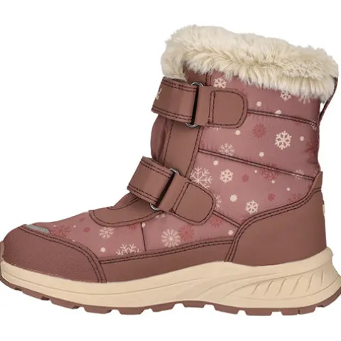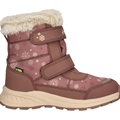 Dejlig og vandtæt Aray Kids Boot WP støvle med en vandafvisende overdel af fluorfri Bionic-Finish® Eco-behandlet tekstil og syntet med refleksdetaljer på snuden for øget synlighed. Støvlen lukkes med to velcroremme, og en trækfane bagpå gør det nemt at træde i støvlen. Indvendig har støvlen et let, lunt foer og et blødt plysfoer i kraven og om åbningen, og sammen med en åndbar og vandtæt Dry Base-membran holdes fødderne lune og tørre. Den komfortable indersål kan tages ud, og den godt mønstrede gummiydersål er stødabsorberende med et godt fodfæste.